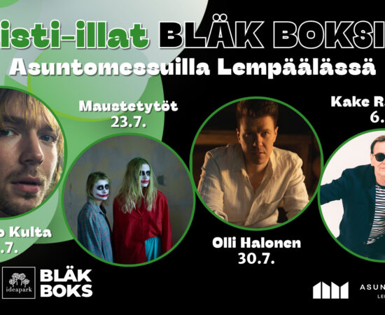 Lempäälän Asuntomessujen artisti-illat järjestetään poikkeuksellisesti messualueen ulkopuolella Ideaparkin Bläk Boksissa…